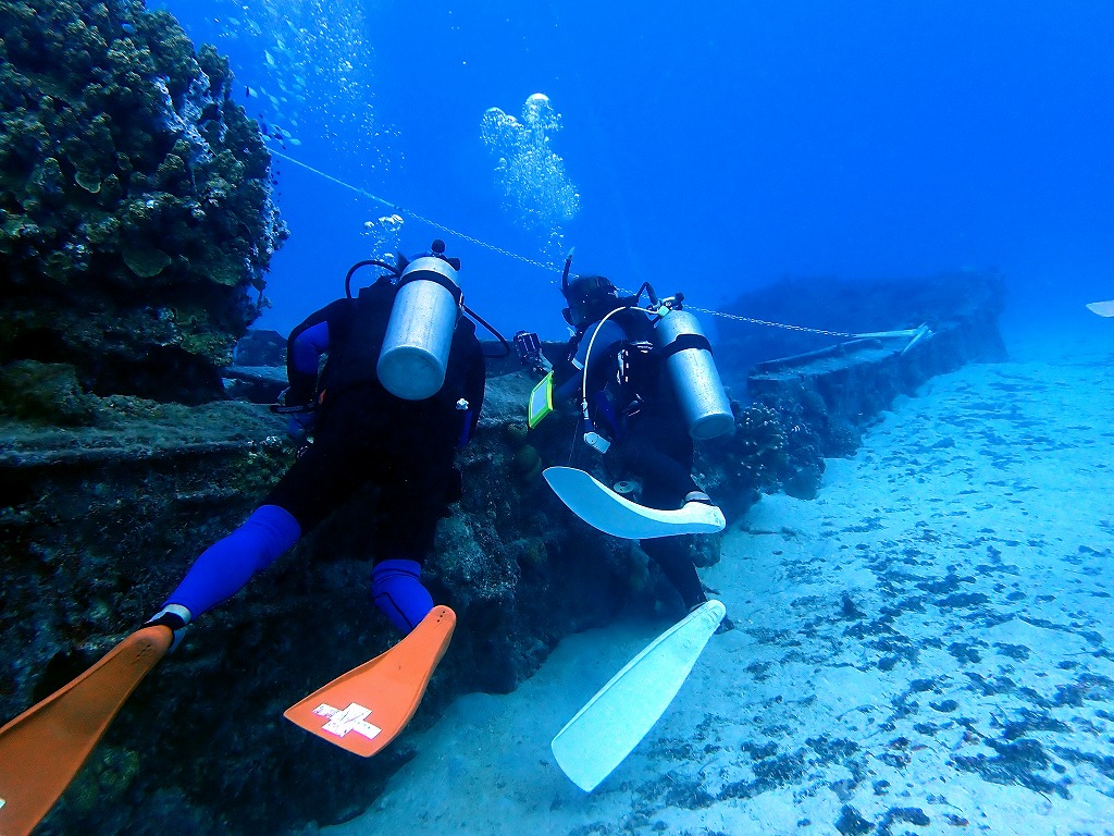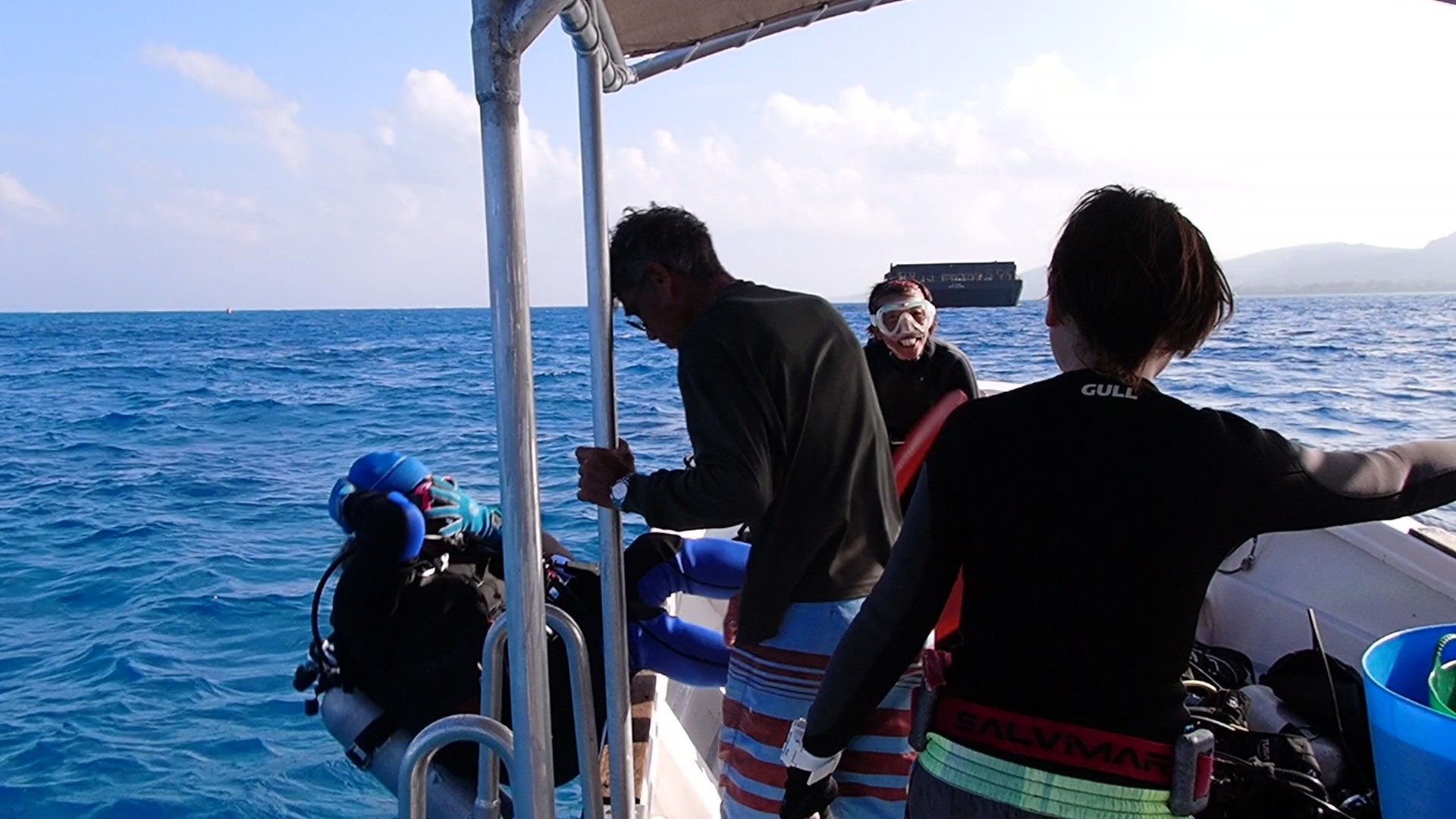 初めてのダイビングポイントです。戦争中に使われた上陸用舟艇の残骸が沈んでいます。エビクラゲが幻想的で綺麗でした。